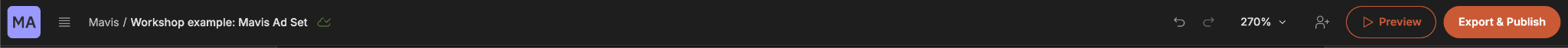 The header menu provides quick access to navigation and editing options. You can move between projects and manage sharing and publishing settings.