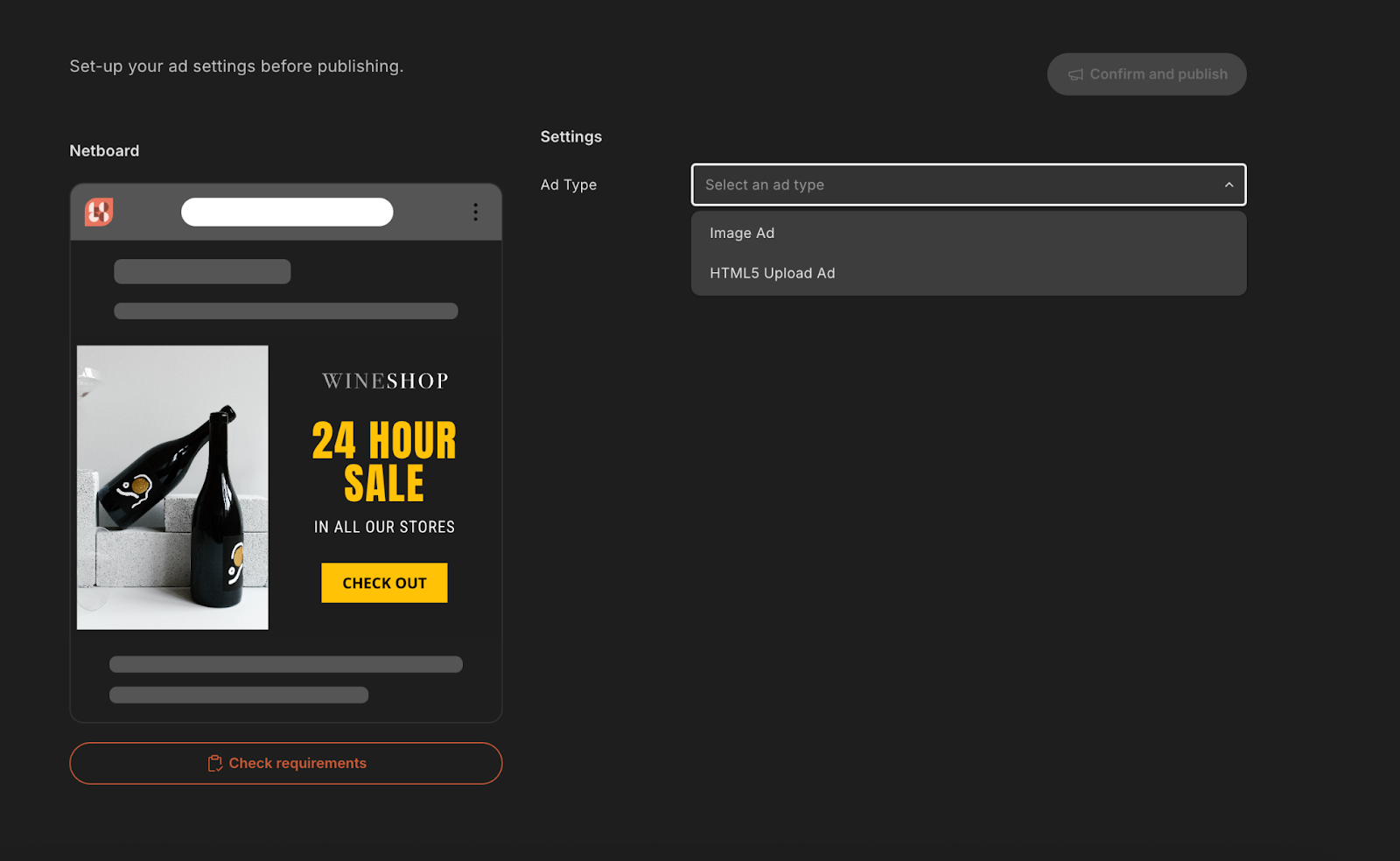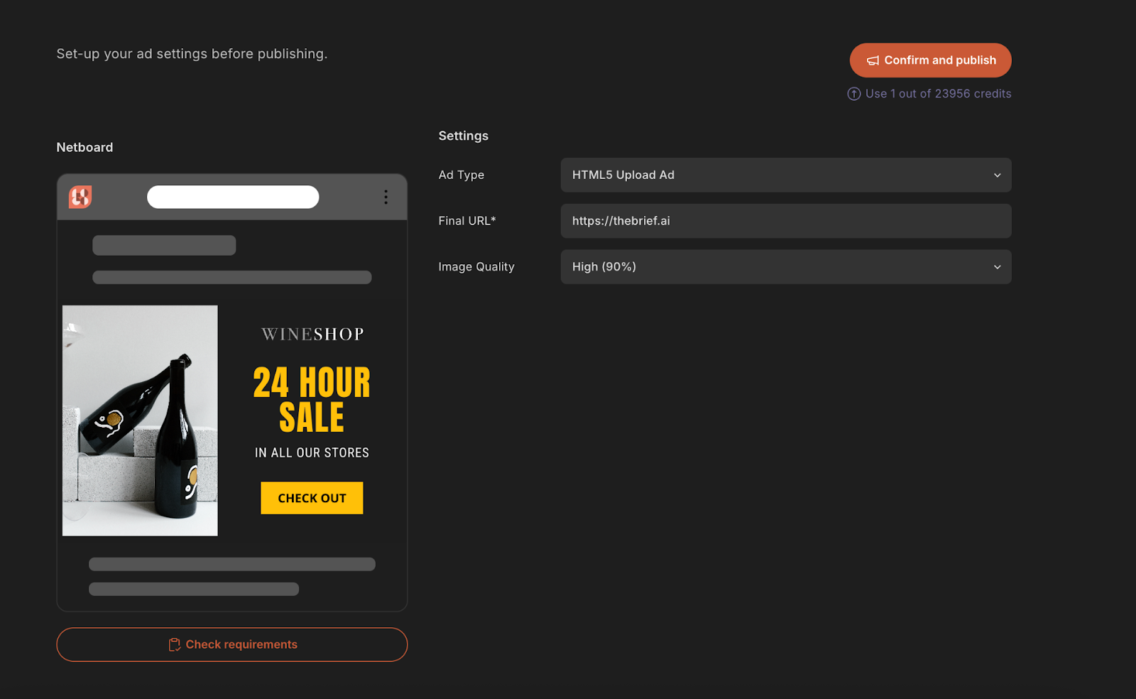 To help with this, you can use the Check requirements option from under the Ad preview on the 5th step.