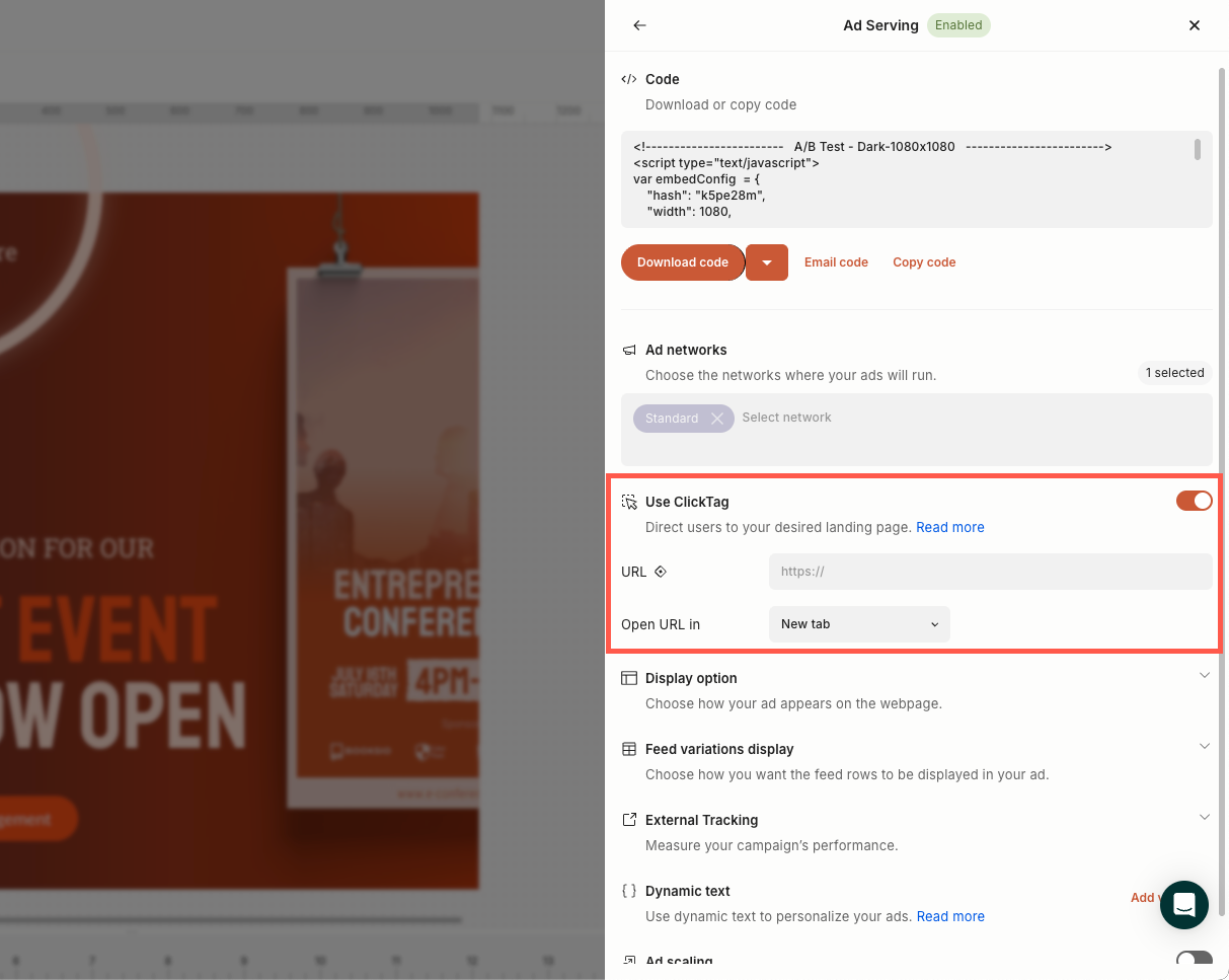 As mentioned, there are two ways to set up click tags: on your HTML5 exports and through Ad Serving.