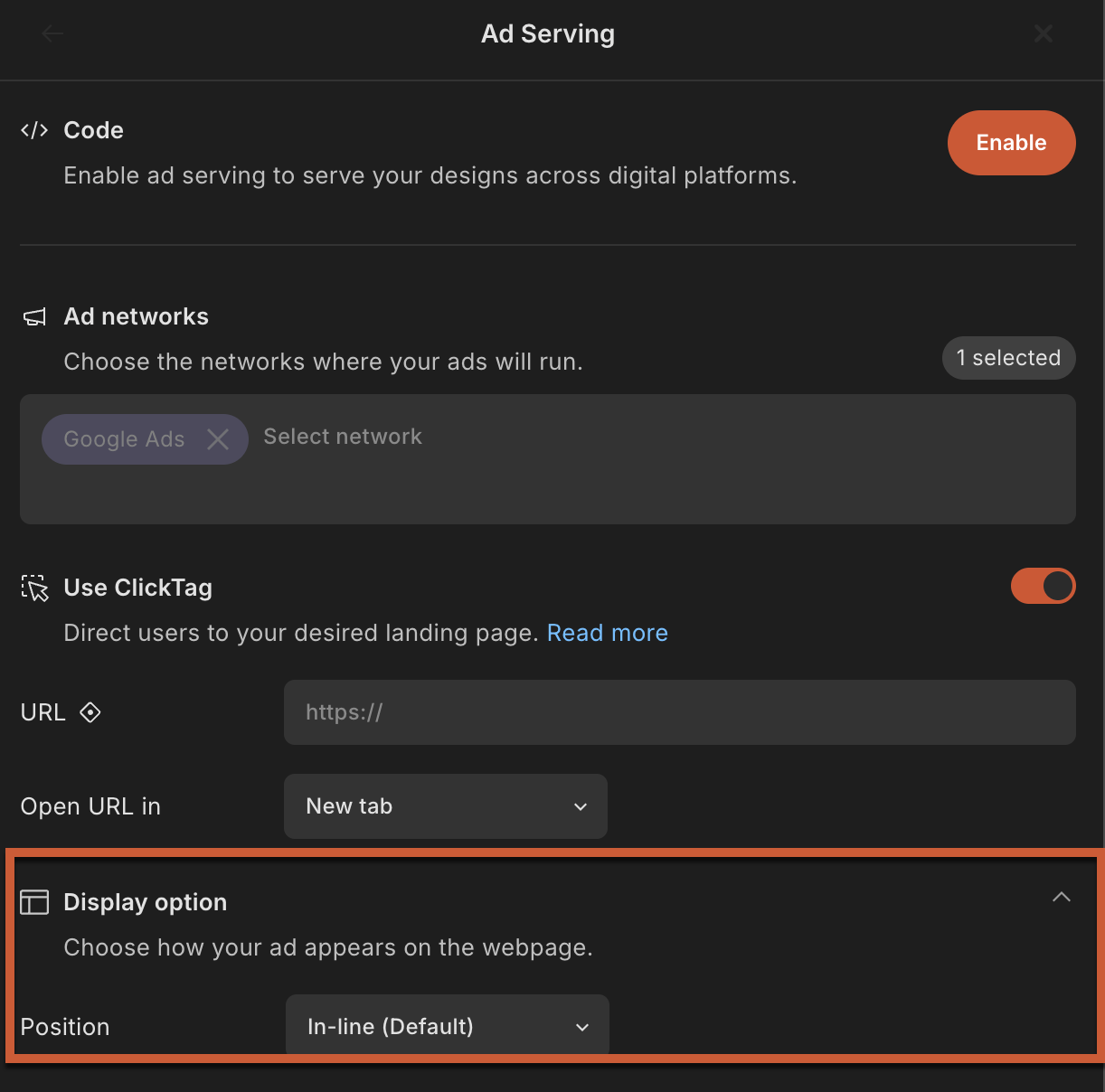 How to Use the Ad Serving Display Options