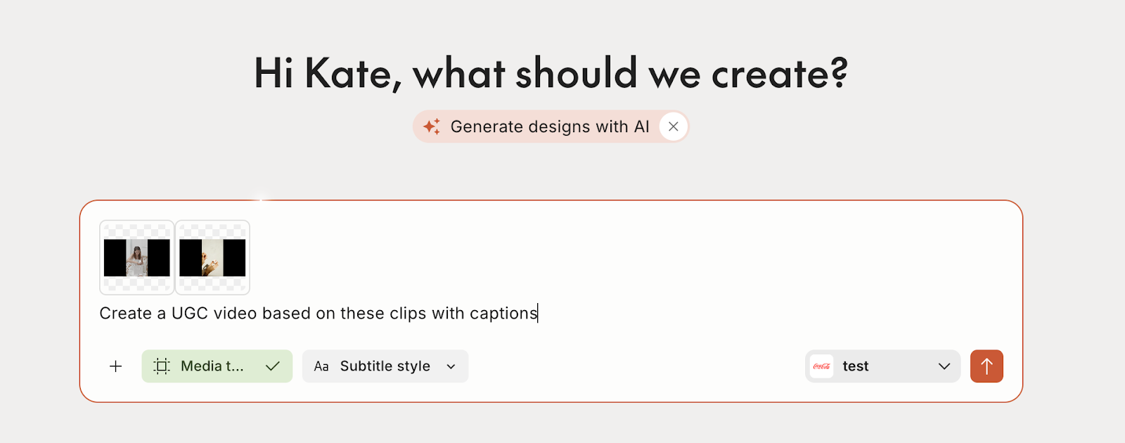- Provide a prompt and attach one asset (image or video).