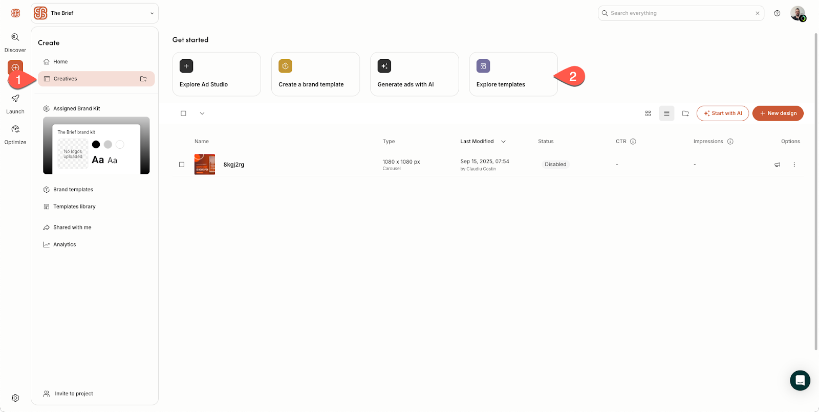 Important: Admins or Team owners can turn off The Brief templates from Brand Control.