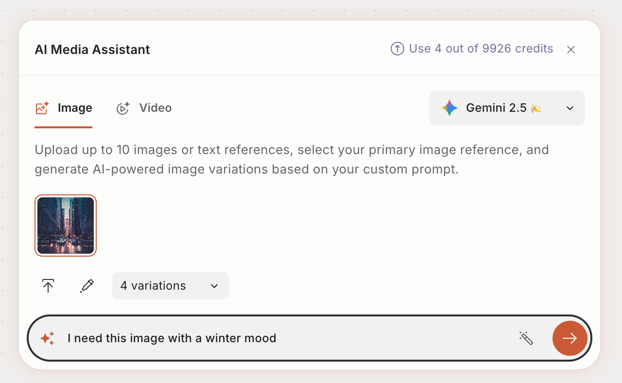 - You'll see the credit cost displayed in real-time before you generate anything. If you need more credits, you can easily upgrade your plan directly from the billing system.